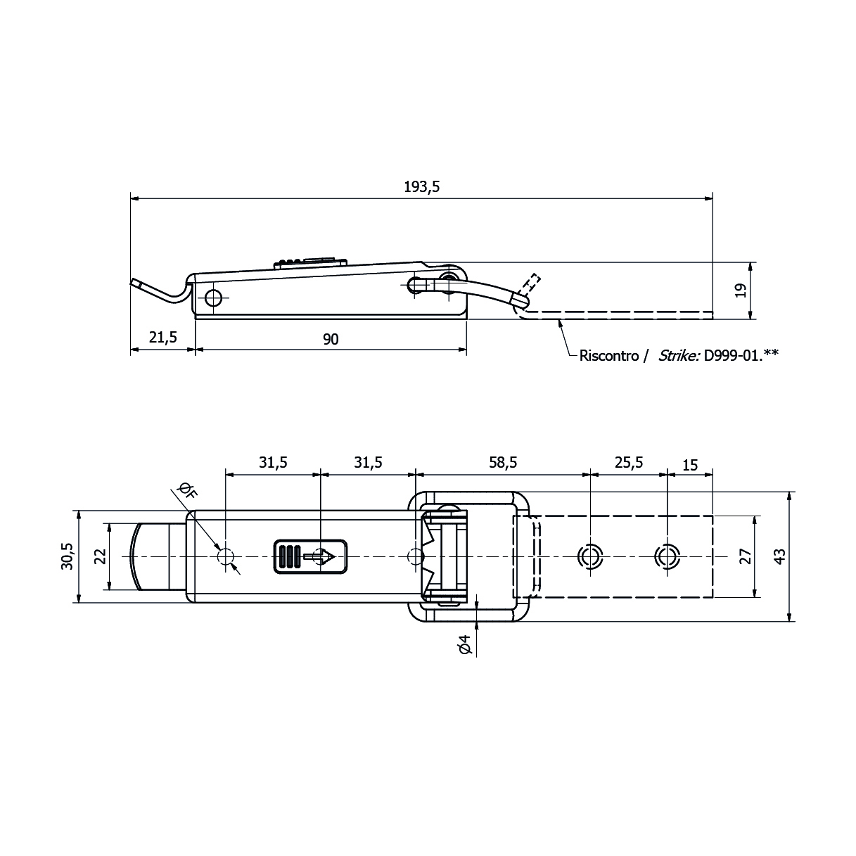 D003 Chiusura a leva con dispositivo di sicurezza
