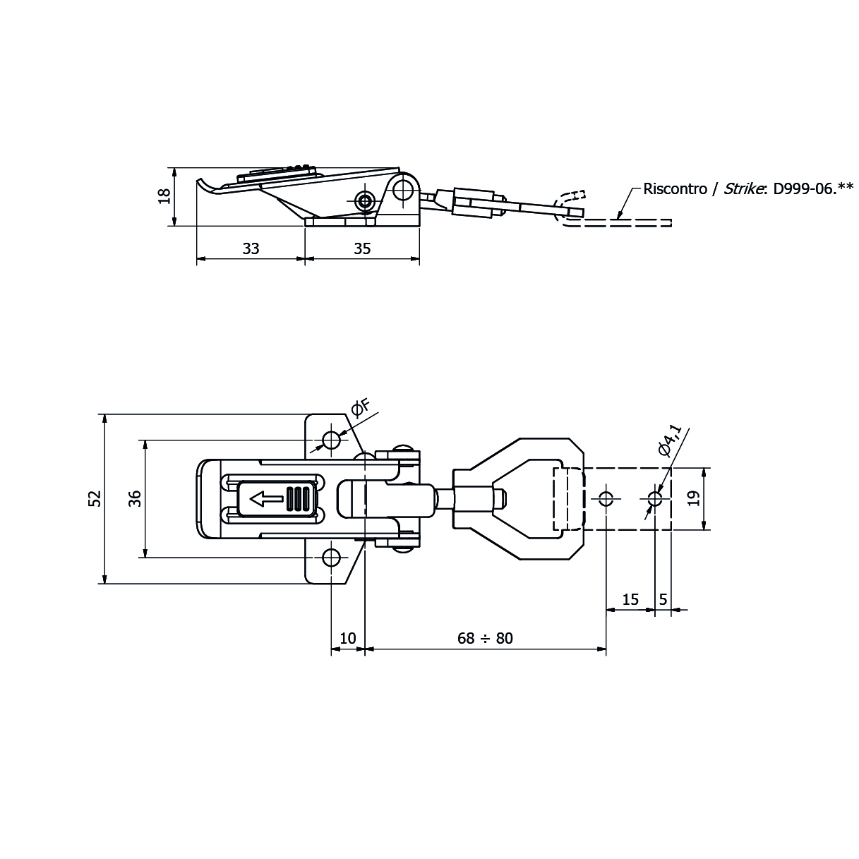 D013 Chiusura a leva regolabile con dispositivo di sicurezza