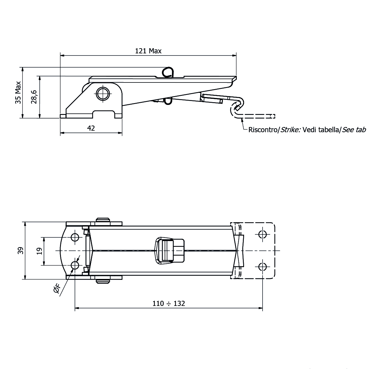 D055 Chiusura a leva regolabile con disp. di sicurezza