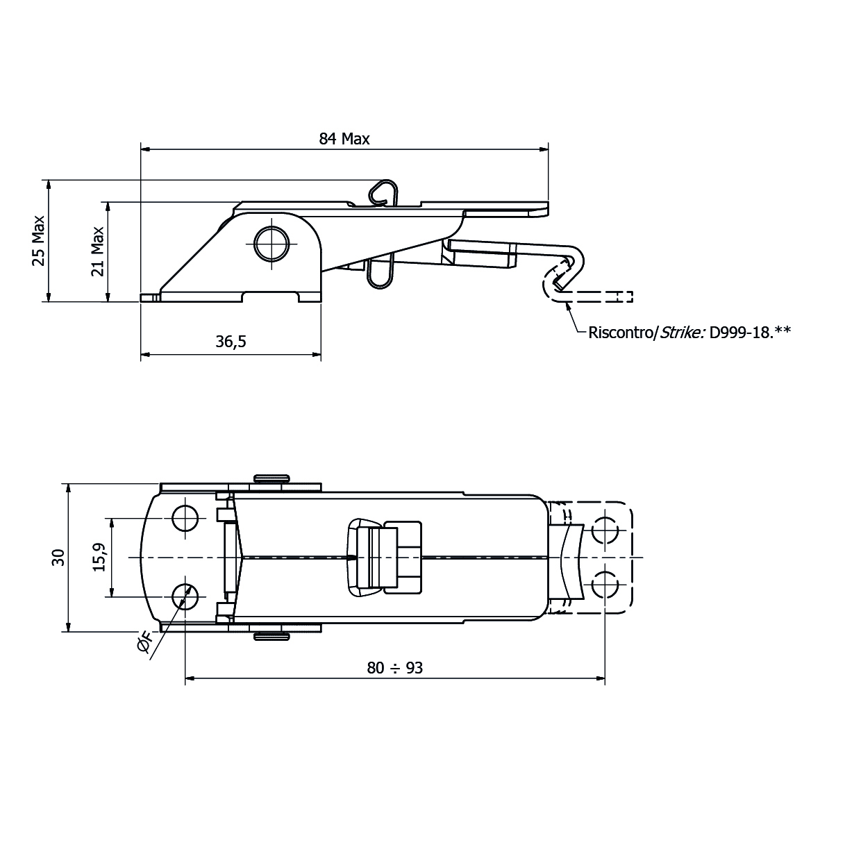 D060 Chiusura a leva regolabile con disp. di sicurezza