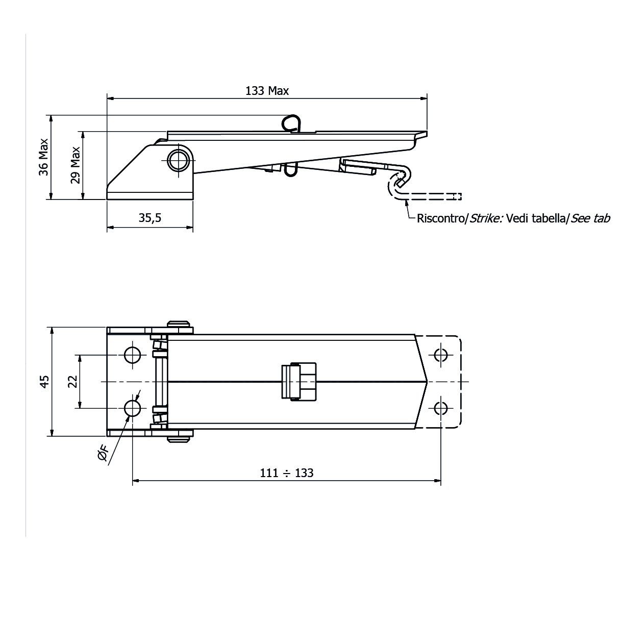 D063 Chiusura a leva regolabile con disp. di sicurezza